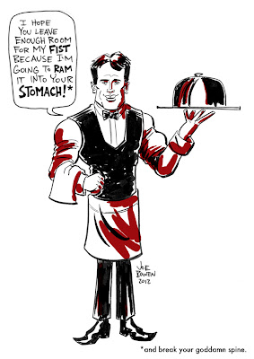 Soda Popinski is getting ready for round 2, and he's pissed! I loved Punch Out as a kid, and still love it to this day. Still some of the best video game music ever produced, the fight song gets stuck in my head all the time. I've been trying to force myself to put more black into my drawings instead of leaving the line work completely open like I usually do. I like inks with lots of solid black areas, but I don't ink that way myself, really frustrating.